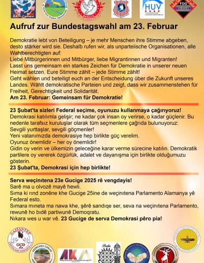 mit besonderer Freude heiße ich Sie im Namen der Föderation der Dersim Gemeinden in Europa willkommen. Mein Name ist Kemal Karabulut, und ich führe den Vorsitz dieser Föderation und bin Mietglied der Dersim Kultur Gemeinde in Berlin