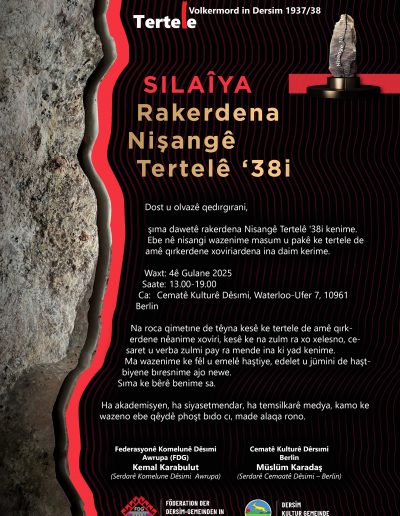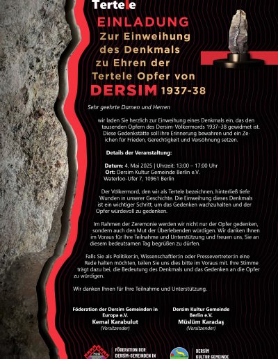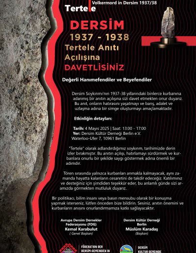Im Jahr 2014 haben wir einen Antrag auf ein Tertele-Denkmal Dersim 1937/38 in Berlin beim Bezirksamt Friedrichshain-Kreuzberg gestellt: