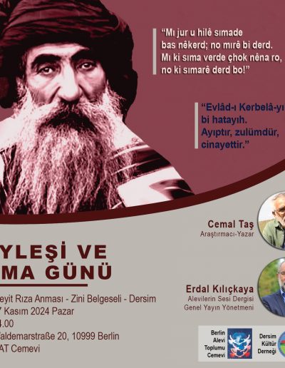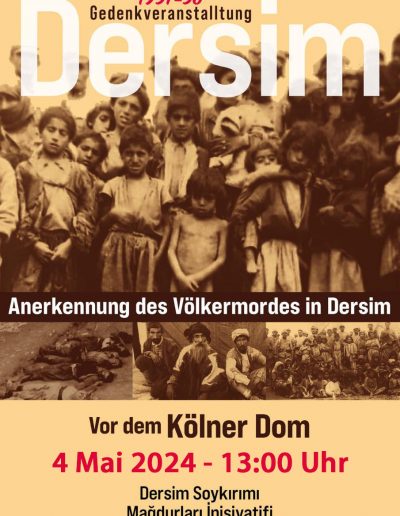 Die Dersim Kultur Gemeinde Berlin organisiert seit ihrer Gründung im Jahr 1993 Gedenkveranstaltungen, Ausstellungen, wissenschaftliche Konferenzen und Konzerte. In den letzten fünf Jahren versammeln wir uns am 4. Mai mit Geistlichen verschiedener Religionen, Wissenschaftlern, Politikern, Künstlern und Vertretern verschiedener Gemeinden im Andachtsraum des Bundesparlaments, um zu gedenken. Bei unserem diesjährigen Gedenktreffen hielt auch die Vizepräsidentin des Bundestages, Petra Pau, eine Rede.